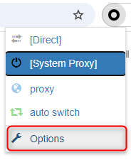 Step 1. Install SwitchyOmega 1. Visit the relevant extension page for your browser: 2. Add SwitchyOmega to your browser. After installation, the SwitchyOmega icon will appear in your toolbar. Step 2. Create a New Proxy Profile 1. Click the SwitchyOmega icon in your browser’s toolbar and select Options to open the settings page.
