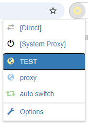 In many tools you will see a “test proxy” function, which performs a conncectivity test to your proxy, and some add a geolocation test as well, to identify the location of the proxy. To correctly test your proxy you should target those search queries to:https://geo.brdtest.com/welcome.txt .Some tools use popular search engines (like google.com) as a default test target. Bright Data will block those requests and you tool will show proxy error although your proxy is perfectly fine.If your proxy test fails, this is probably the reason. Make sure that your test domain is not a search engine (this is done in the tool configuration, and not controlled by Bright Data).What is SwitchyOmega?